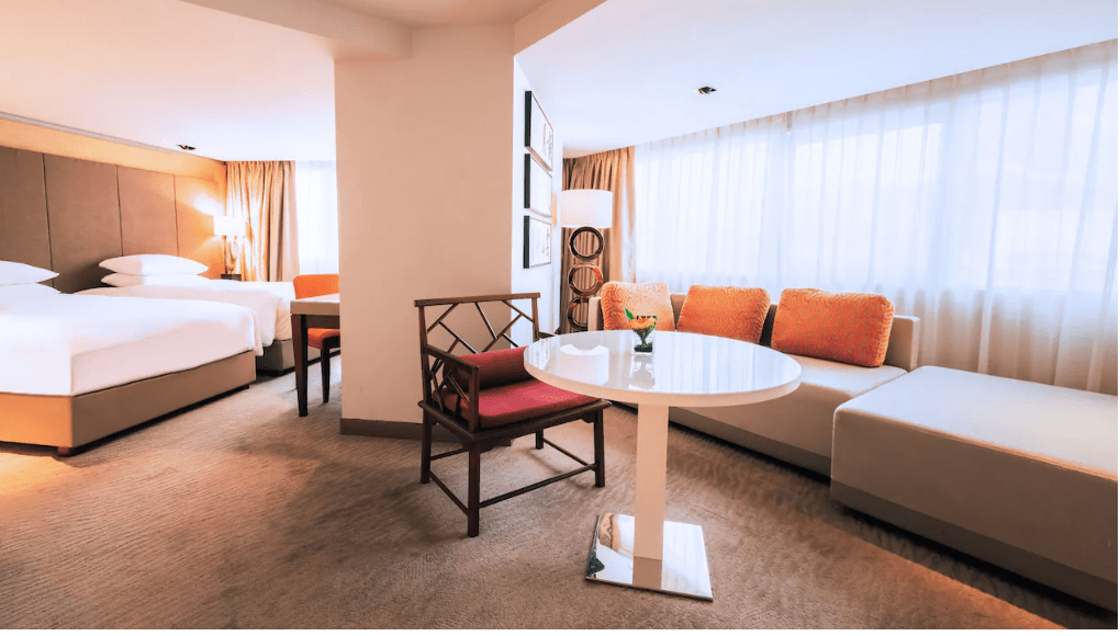 Wrangling a toddler on a 14 hour flight is what I imagine wrangling a badger would be like, which is why when our family of five finally made it into the heart of Taipei, I was grateful for the air-conditioned luxury of the Grand Hyatt Taipei. Nestled in the vibrant heart of Taipei’s Xinyi District, the Grand Hyatt Taipei stands as an icon of luxury. It’s rated 5 stars and offers easy access to shopping like Taipei 101, vibrant night markets, and excellent restaurants. The rooms are spacious and elegantly designed, many with stunning views of 101 that you can specifically book. On floors 2 to 3, you’ll find multiple acclaimed restaurants offering diverse cuisines, an expansive outdoor pool area, a well-equipped fitness center, and a luxurious spa. There’s even a playroom stocked full of toys, adjustable A/C, and a bathroom inside the playroom. Talk about family-friendly.