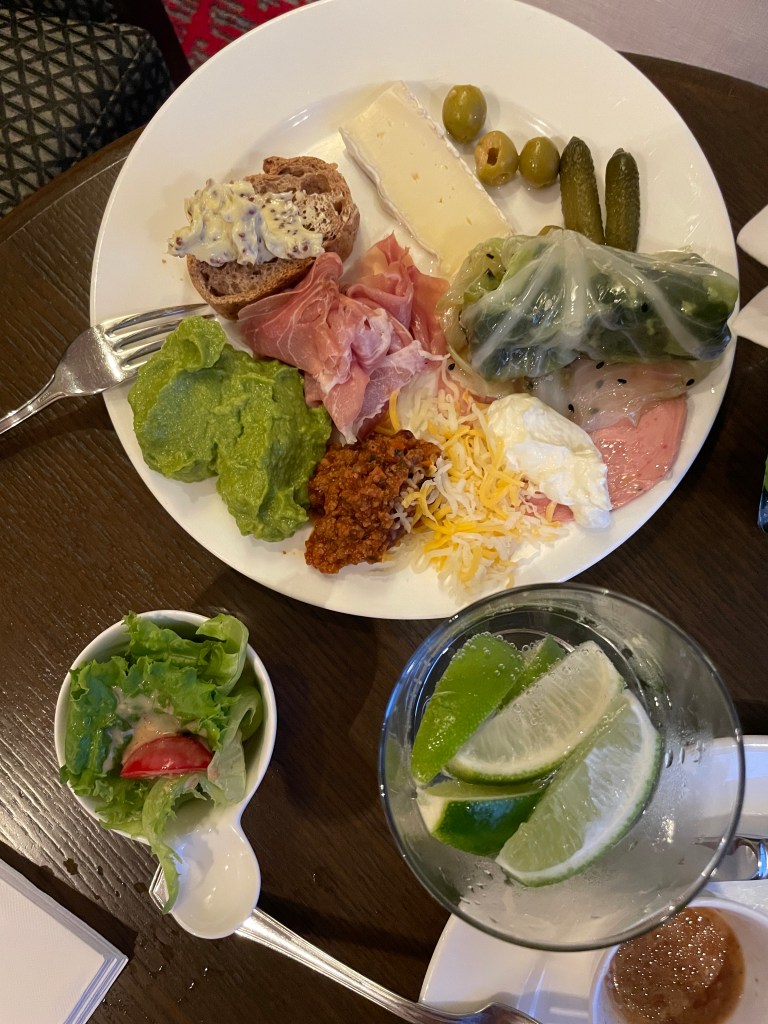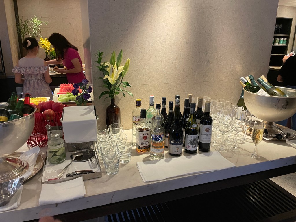 Happy Hour Transformation: It’s amazing how much detail goes into setting . Gone were the pastries, replaced by heartier hot dishes, a salad bar, and a wider selection of drinks (including a tempting array of cocktails for the adults). While the atmosphere became more adult-oriented, it remained welcoming of our crew.